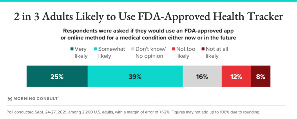 Even so, 2 in 3 adults said they would likely get an app to track a medical condition that was approved by the FDA.