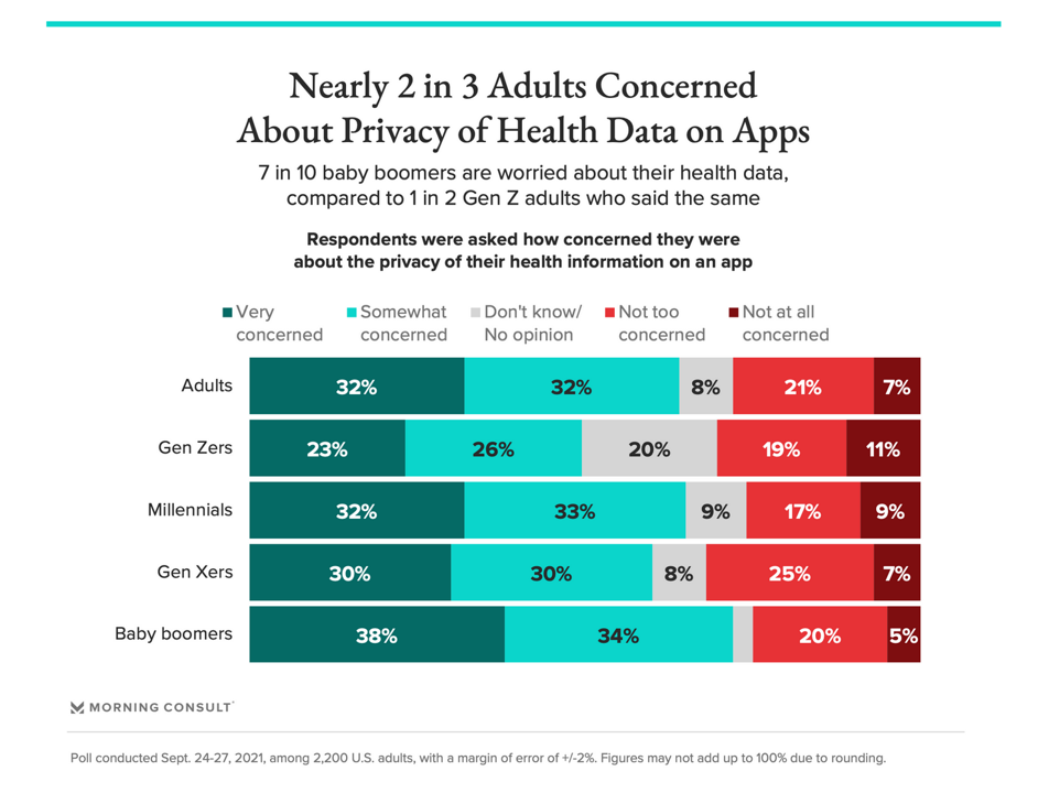 More Boomers are concerned with health data app privacy than Gen Z consumers, as the chart illustrates.