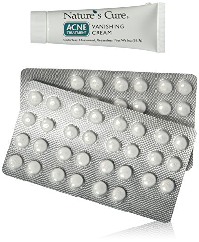 Nature’s Cure is a unique, two-part acne treatment that works inside and outside your body to clear and prevent acne. Internal homeopathic acne medicine: Acne can be caused by internal imbalances due to diet, stress or hormonal changes. Nature’s Cure tablets are a blend of all-natural ingredients, which stimulate your body’s natural defenses to correct these imbalances and to help stop acne where it can start. They do not increase sun-sensitivity and have no side effects. Topical acne medication: To clear existing blemishes, Nature’s Cure has a colorless, unscented, greaseless, 5% benzoyl peroxide cream. Nature’s Cure vanishing cream also contains aloe Vera and allantois to moisturize and soothe the skin. People often experience noticeably clearer skin after just two to four weeks. For best results, use continuously to prevent acne from recurring. Can be used safely with Nature’s Cure body acne treatment spray for clear skin everywhere. Available without a prescription: This package contains a one-month supply of tablets and cream.
