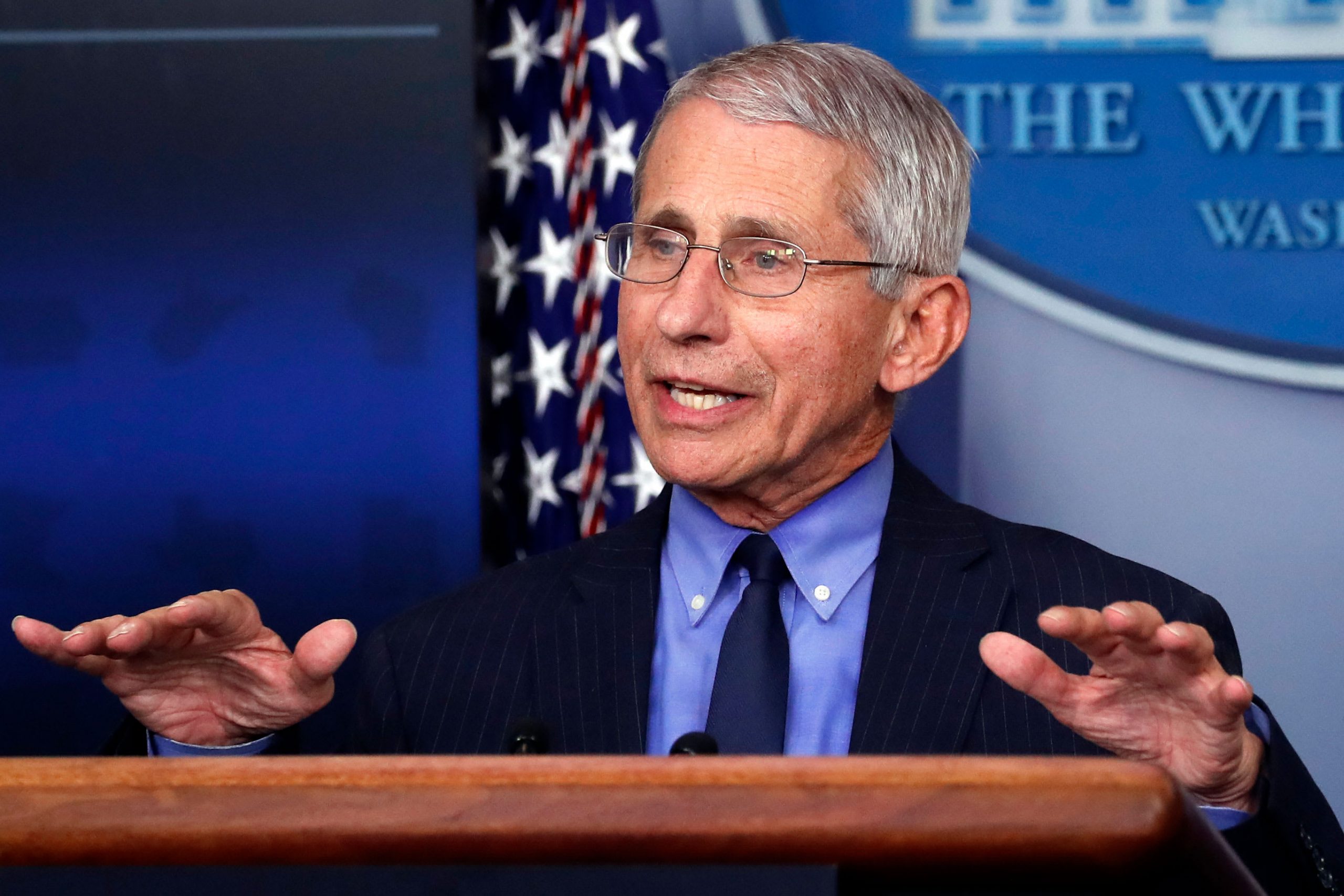 Dr. Anthony Fauci, director of the National Institute of Allergy and Infectious Diseases, speaks about the coronavirus in the James Brady Press Briefing Room of the White House, Friday, April 17, 2020, in Washington.