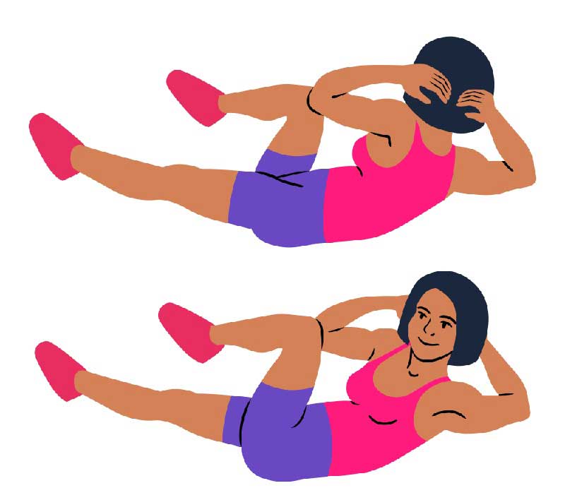 - Alternately, lift the left shoulder towards the right one and then tilt your legs to the equal right shoulder.