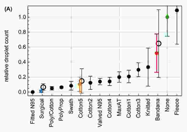 A knitted mask provided less protection than any of the cotton ones and a bandana only cut the number of droplets in half. Surprisingly, a fleece neck gaiter actually increased the number of droplets expelled to 110 per cent.