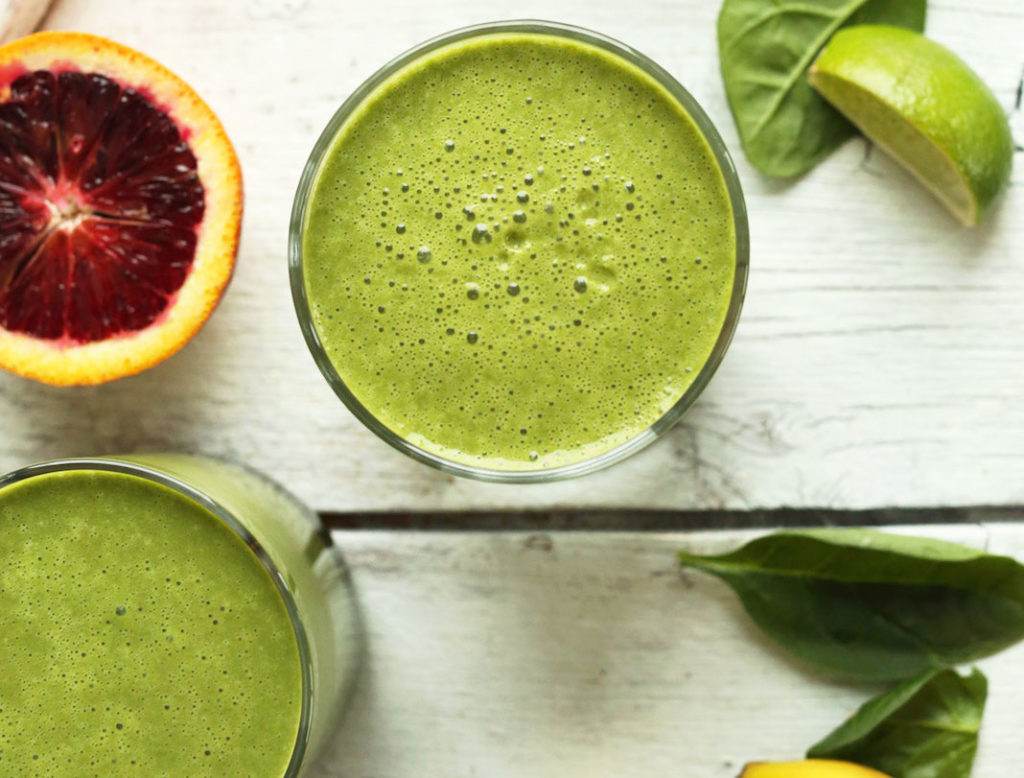Add 1 cup of coconut milk, 1 ripe banana, ½ chopped frozen mango, 1 large handful of baby spinach, ¼ a cup of pumpkin seeds, one scoop of protein powder and blend until smooth