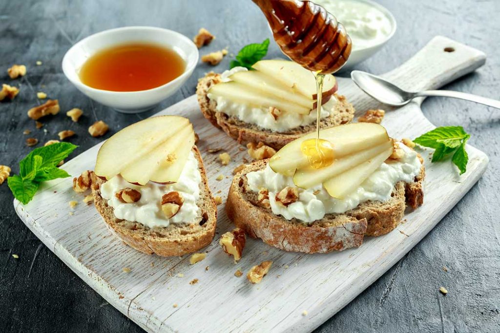 1. Make 2 slices of wholegrain toast, spread 100g of ricotta or cottage cheese on top.