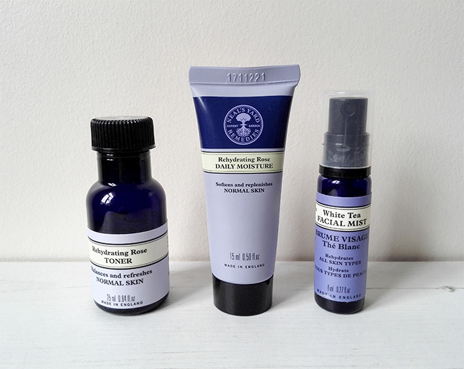 Quite a few months back, Neal’s Yard Remedies had a sale on and I couldn’t resist buying some of their travel size products. I decided to go for the products which I haven’t tried before: Rehydrating Rose Daily Moisture, Rehydrating Rose Toner and White Tea Facial Mist. The two products from the Rehydrating Rose range are suitable for normal skin while White Tea Facial Mist is suitable for all skin types.