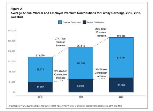 Single coverage reached $ 7,470 in 2020 and was $ 5,049 in 2010.
